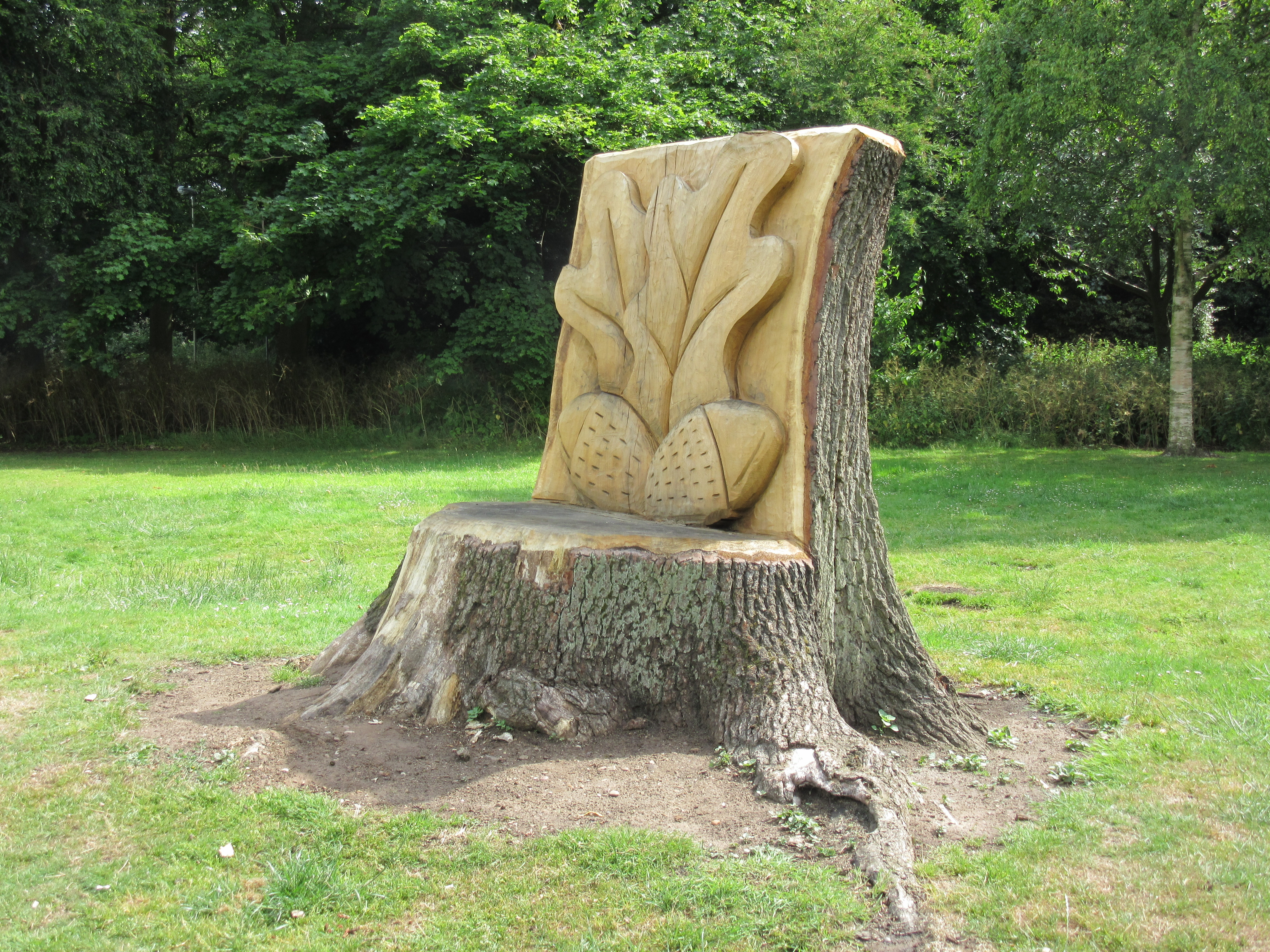 Following the sad news that the large Oak in Evington Park had died and needed removing, it was decided rather than remove the tree completely we would create a carved seat to remember this magnificent tree. Daran from the Tree section kindly offered to carve the Tree and Park services paid a small fee for his additional services to create this lovely seat. We all hope that from the loss of the tree Park Users will have years of enjoyment looking and sitting on this wonderful seat.